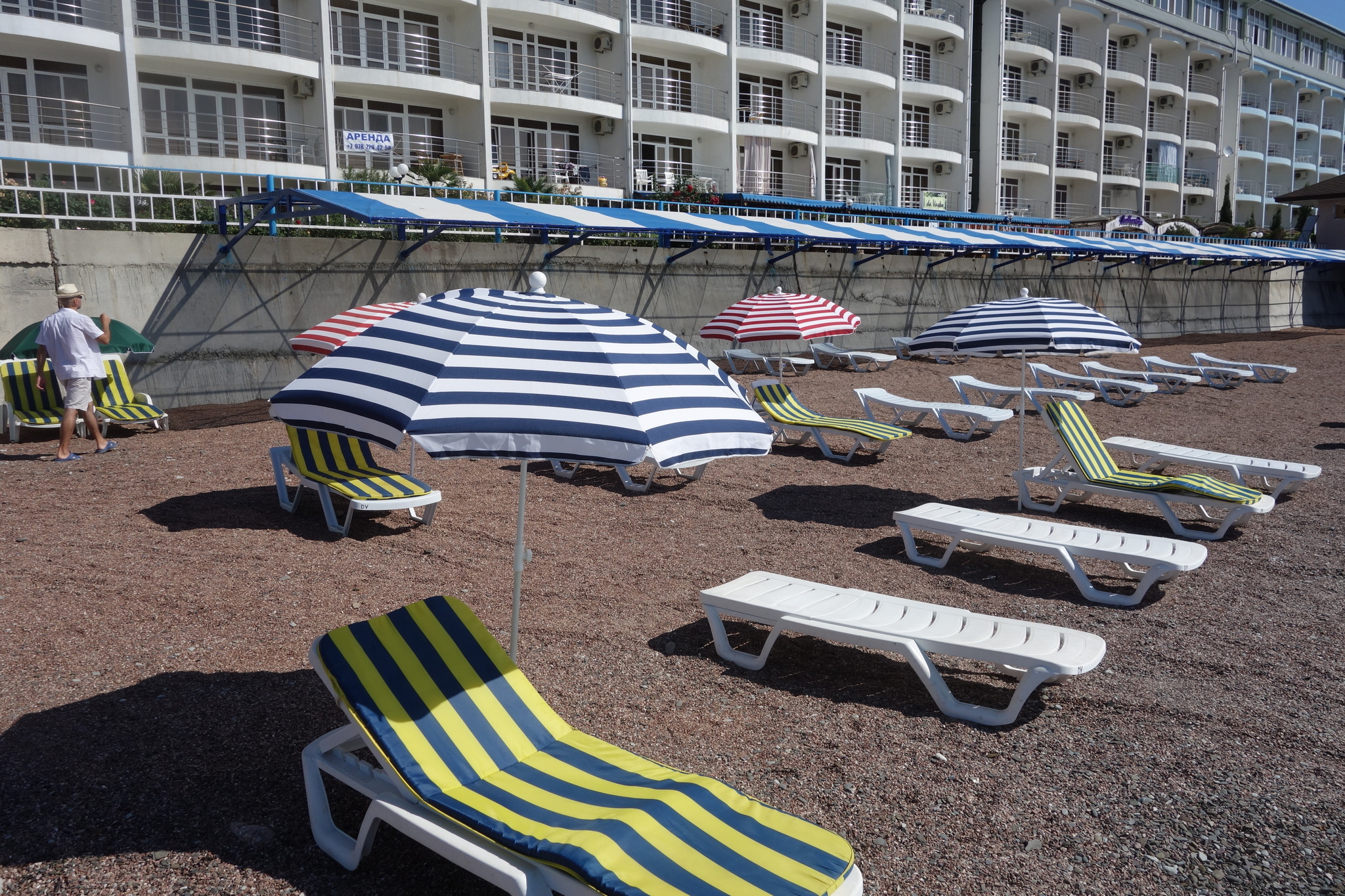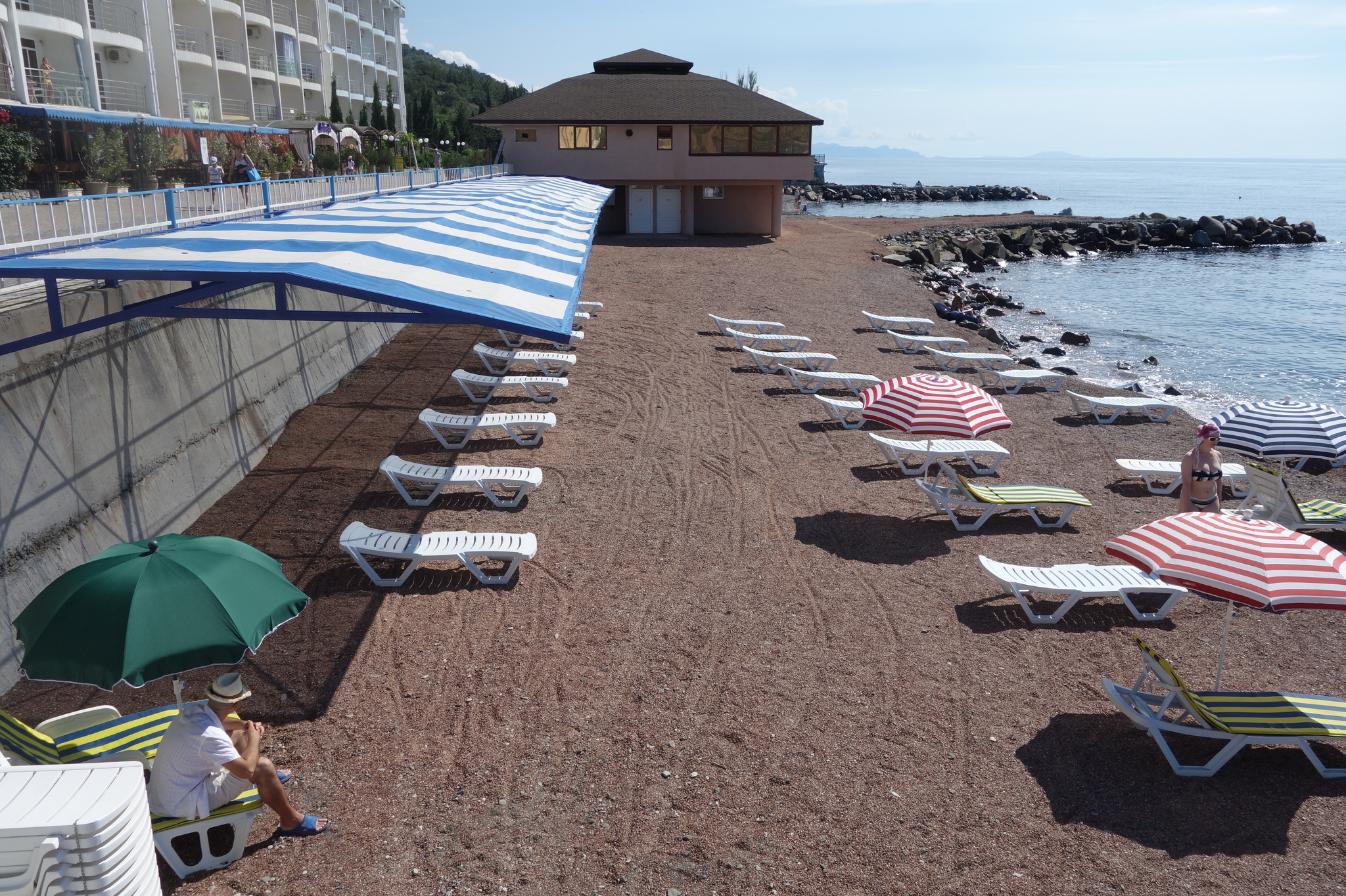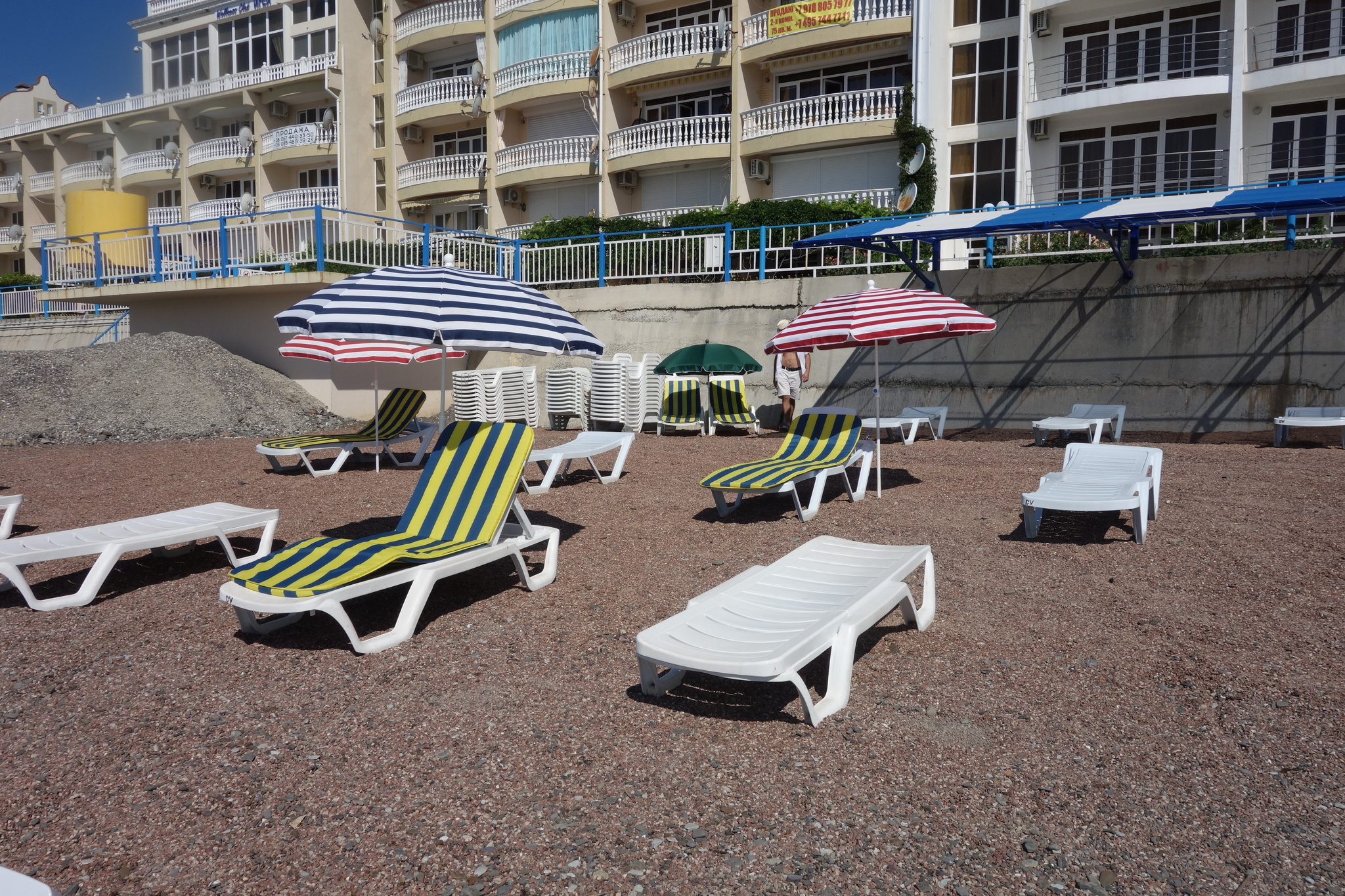 Собственный пляж отеля, расположенный в 10 метрах от одного и в 50 метрах от другого корпуса отеля. Пляж оборудован всем необходимым для комфортного отдыха: теневыми навесами, туалетами, душевыми кабинами и лежаками. Также к услугам наших Гостей бассейн и потрясающая джакузи под открытым небом.